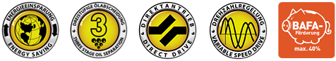 Compresoarele din seria DV sunt echipate cu grupuri de compresie mari, cu cuplaj direct unu-la-unu  pentru a evita pierderile prin curele sau transmisii cu transmisie. Eficiența energetică chiar mai mare este obținută prin utilizarea convertoarelor de frecvență în compresoarele din seria D pentru a controla puterea compresorului în raport cu consumul de aer comprimat.
