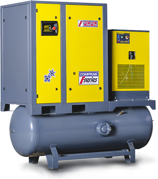 Compresoarele cu surub cu injectie de ulei Comprag Germania serie F sunt special proiectate pentru producerea economica si fluenta a aerului comprimat in instalatiile industriale. Aceste compresoare beneficiaza de un design compact si logic, materiale si manopera de calitate, utilizand componente originale de la producatori consacrati. In versiunea standard seria de compresoare FRD sunt echipate cu un uscator prin refrigerare.