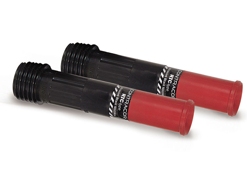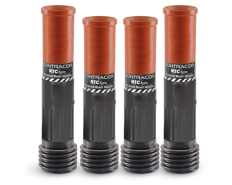 Duzele de sablare RTC, sunt duze de sablare, rezistente la uzura, fabricate din carbura de tungsten (TC), au o durata de viata de pana la 400 ore, invelis din cauciuc, filet din cauciuc, 50mm pentru suportul de duza NHP, dimensiunea de intrare 32mm.